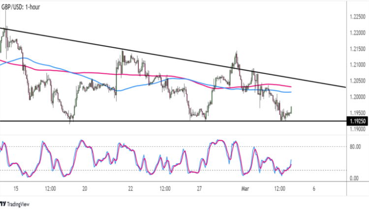 The pair is back down to the bottom of the formation, finding buyers at the 1.1925 support zone. Where to next?