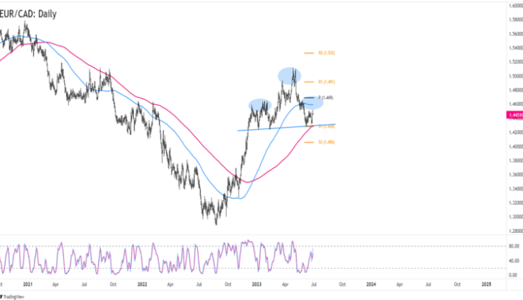 You can wait for EUR/CAD to breach its 1.4500 short-term resistance and aim for the 1.4600 zone or the nearest inflection point.