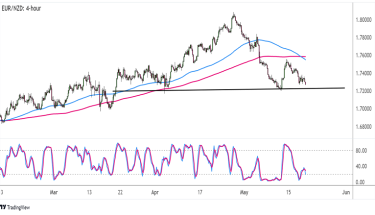 However, Stochastic still seems to be heading higher after recently pulling out of the oversold region. In that case, EUR/NZD might still bounce off support until bearish pressure picks up again.