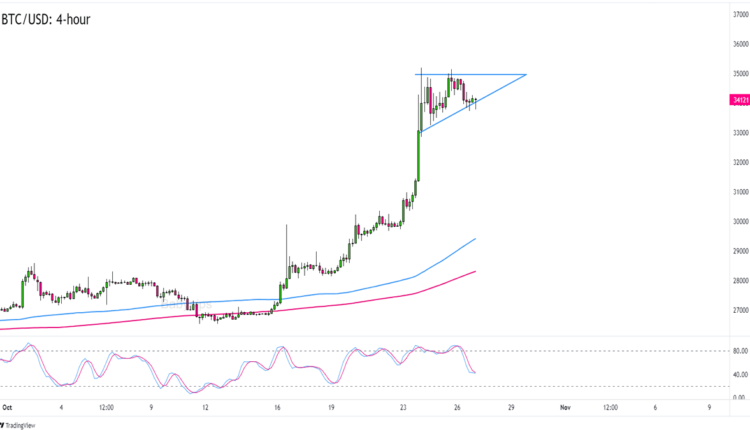 But if BTC/USD makes new daily lows, or if the pair consistently trades below the 33,000 mark, then we can consider a possible dip back down to the big 30,000 previous inflection point.