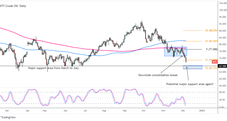 Oil is now almost nearly back to a major area of support, the $67.50 handle which consistently brought in buyers multiple times between March 2023 until July 2023, before the start of a big move higher.