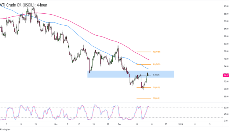 WTI crude oil (USOIL) found support from the S1 ($68.35) Pivot Point line and is now trading closer to the actual Pivot Point line ($71.67).