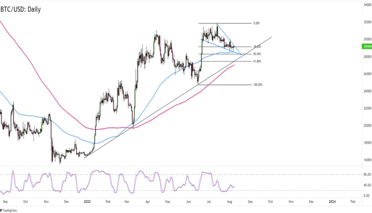 After getting rejected from the $31,500 area a few weeks ago, BTC/USD is now trading just under the big $30,000 mark.