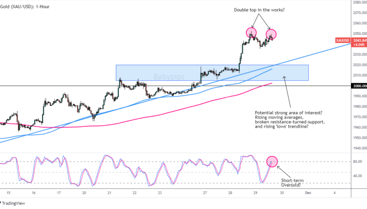 Again, we can see a double top formation in the works and if does play out, then that may draw in technical sellers on XAU/USD.