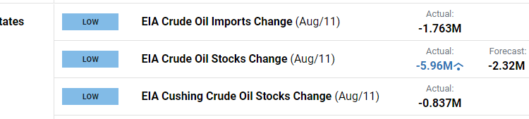 US crude stocks declined by nearly 6 million in the week ended August the 11th having little effect on the price of WTI this week where the pullback continues. The current pullback is the deepest since the bullish advance began at the end of June.