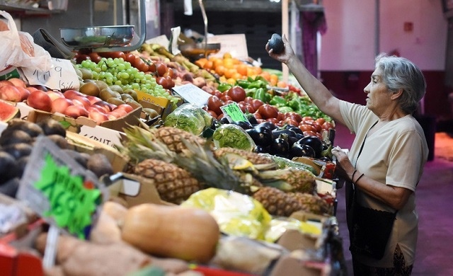 Người tiêu dùng mua sắm tại một chợ ở Madrid, Tây Ban Nha. (Ảnh: THX/TTXVN)