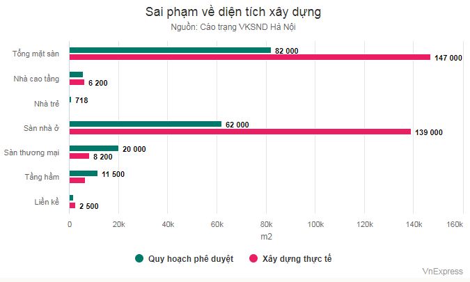 Khối nhà thấp tầng diện tích được phê duyệt là hơn 1.600 m2 để xây 15 căn hộ cao 3 tầng. Tuy nhiên, ông Thản đã chỉ đạo xây dựng trên hơn 2.800 m2 với 38 căn hộ cao tầng. Hơn nữa, toàn phần diện tích quy hoạch xây dựng nhà trẻ đã chuyển đổi thành các căn hộ thấp tầng.