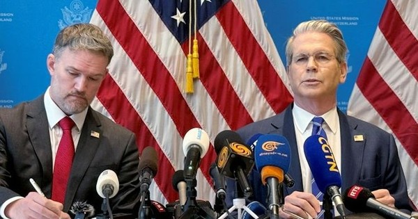 Đại diện Thương mại Mỹ Jamieson Greer và Bộ trưởng Tài chính Mỹ Scott Bessent, tại Geneva, Thụy Sỹ ngày 12/5.