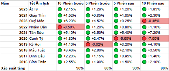 Trong khi nhà đầu tư cá nhân thường có xu hướng hạ tỷ trọng margin để quản trị rủi ro và tất toán tài chính trước kỳ nghỉ Tết Nguyên đán (thường dẫn đến thanh khoản sụt giảm trong 10 phiên trước Tết), thì khối ngoại và các tổ chức nội lại tận dụng giai đoạn “trũng” thông tin này để tích lũy vị thế. Dữ liệu lịch sử 10 năm qua (2016 – 2025) với xác suất tăng điểm trước Tết lên đến 80 – 90% chính là minh chứng cho hiện tượng “mua trong sự hoài nghi” này.