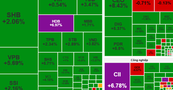 Bước sang phiên chiều, thị trường tiếp tục giảm điểm trong 30 phút đầu nhưng nhanh chóng lấy lại đà tăng nhờ lực cầu trở lại ở nhóm cổ phiếu ngân hàng và chứng khoán. Đặc biệt, nhóm bất động sản tiếp tục mở rộng đà tăng, kết hợp với dòng tiền lan tỏa từ nhóm ngân hàng, đã giúp VN-Index bứt phá mạnh mẽ trong 30 phút cuối phiên, đóng cửa tại mức cao nhất 1.657 điểm, tăng 22 điểm (+1,36%).