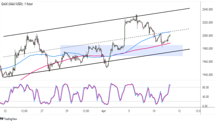 If the channel bottom holds, XAU/USD could recover to the top of the channel at $2,040 or at least until the middle around $2,010.