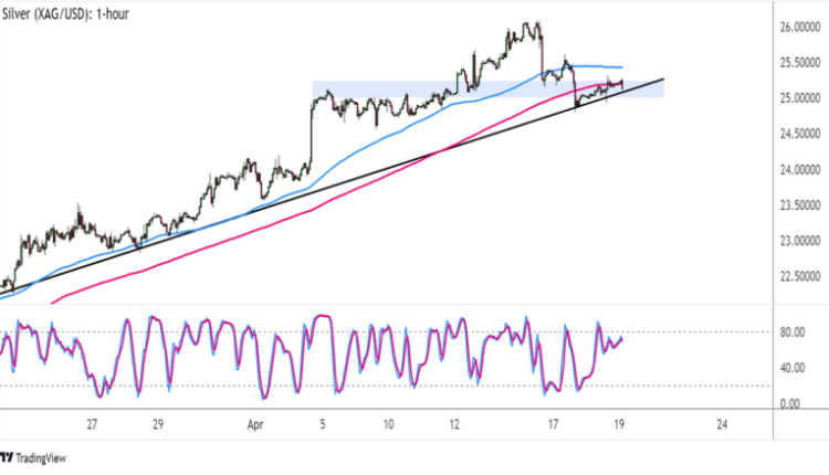 A bounce could take XAG/USD back up to the highs around $26.00, but a break lower could signal that a downtrend is underway.