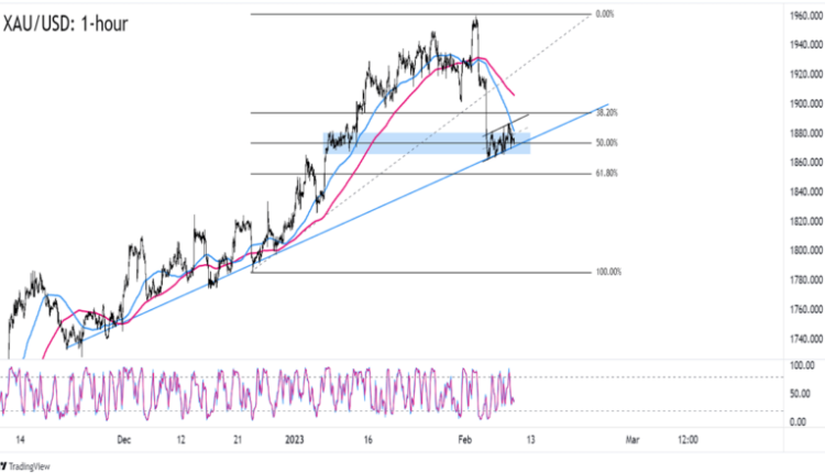 XAU/USD could bounce from its trend line support and retest previous areas of interest like $1,900 or $1,920.