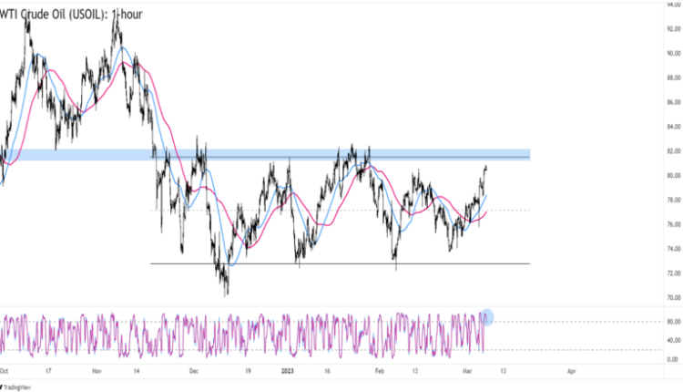 WTI crude oil (USOIL) prices found support from the $74 zone and is now trading closer to the $80 psychological area.