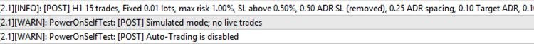 I get lots of questions from people about why Max doesn't take a trade, or if it's setup correctly. There are so many options, and so many different reasons why something may not be working correctly in your environment. If I can't see it, how can I possibly know what's going on there? Then I got the idea to write my own version of a POST for Max. Now, when Max starts up (when you put it on on a chart), there won't be this grand “Whoosh!” sound, but there will be messages written to the log.