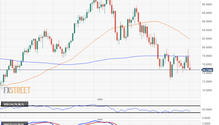 - WTI backslides into $74.50 in exacerbated market volatility.