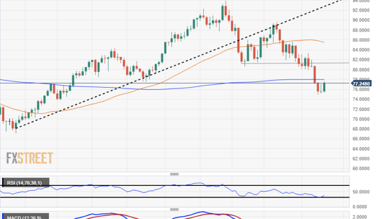 West Texas Intermediate (WTI) Crude Oil prices have rebounded 2.8% on Friday, climbing from a daily low of $75.35 and testing into $77.50 heading towards the close after a rough week that has seen WTI shed 8.61% peak-to-trough.