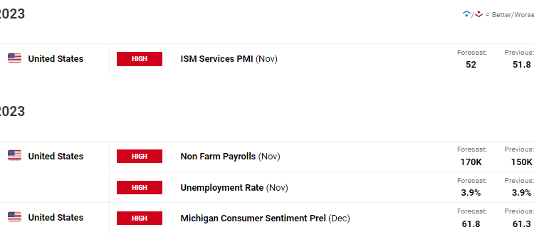 From a USD perspective, the week ahead is relatively light yet hard hitting in terms of data releases. Firstly, the ISM services PMI report is expected to tick higher – a print that is key to the US economy being primarily services driven. Rounding off the week, Non-Farm Payroll (NFP) will provide more information as to the state of the US job market. Considering the greenback is trading at multi-month lows, it may be time for some dollar strength that could weigh negatively on crude oil.