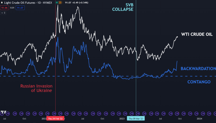 Despite all this, crude oil continues to surge higher. An indication of underlying supply and demand dynamics within the oil market is backwardation and contango.