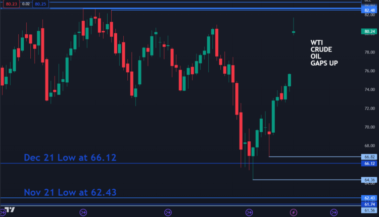 Crude Oil Price Gaps Higher on OPEC+ Output Cut Compounding Supply Issues. Higher WTI?