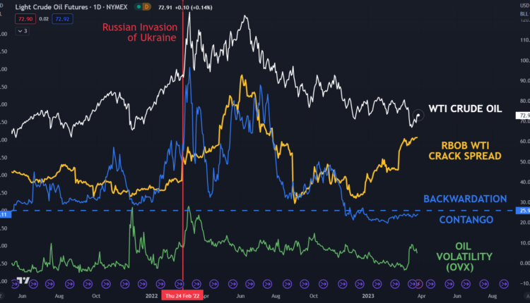 WTI CRUDE OIL, CRACK SPREAD, BACKWARDATION/CONTANGO, VOLATILITY (OVX)