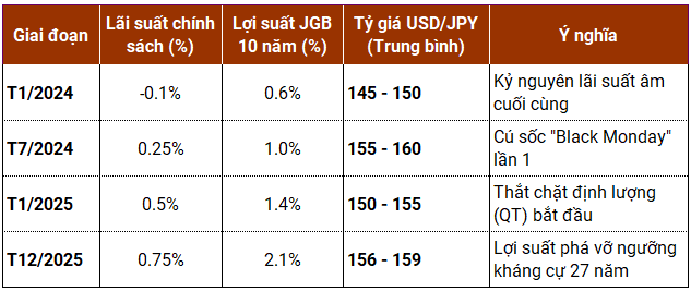 Sự tồn tại của Yen carry trade phụ thuộc vào hai yếu tố: lãi suất thấp tại Nhật Bản và đồng Yen yếu ổn định. Tuy nhiên, năm 2025 đã chứng kiến cả hai trụ cột này sụp đổ. Với việc lạm phát tại Nhật Bản duy trì ở mức 2.9% vào tháng 11/2025 và đã vượt mục tiêu 2% trong 44 tháng liên tục, BoJ không còn lựa chọn nào khác ngoài việc bình thường hóa chính sách, hay nói thẳng ra là thắt chặt tiền tệ.