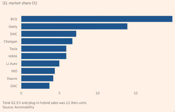 Các hãng xe nước ngoài chứng kiến doanh số sụt giảm đáng kể tại Trung Quốc trong những năm gần đây, trước sự trỗi dậy của các đối thủ nội địa và những tân binh như BYD, Geely và Xiaomi. Điều này diễn ra trong bối cảnh xe điện và xe hybrid sạc ngoài hiện chiếm hơn một nửa doanh số xe mới.