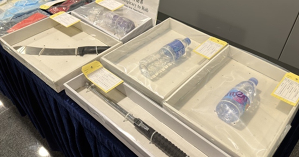 Một số tang vật trong vụ cướp 1 tỉ yen được cảnh sát Hồng Kông trưng bày tại buổi họp báo ngày 22-12. Ảnh: Sing Tao Daily