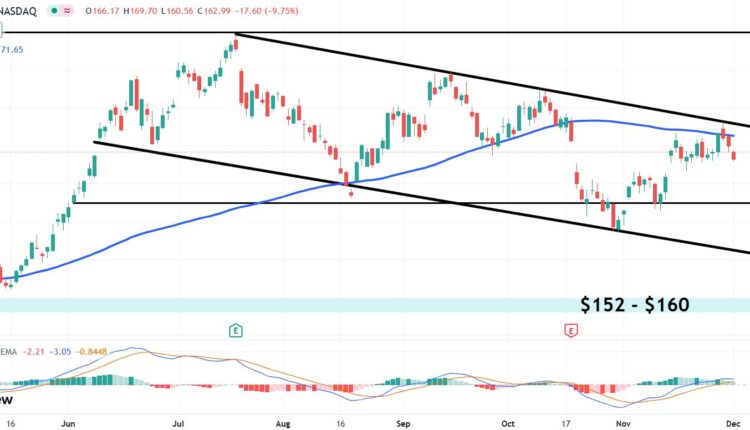 Tesla (TSLA) stock closed down 0.55% to $238.75 on Friday. This was the third day in a row on Friday that TSLA stock sold off, enacting what seems like a bearish Three Black Crows candlestick pattern, although Friday did see a rebound off a much lower open. This means that TSLA stock looks primed to drop about 10% to the $210 support level or even further to the descending bottom line of the price channel in the $180s as the market moves toward Christmas.