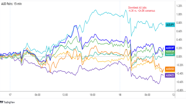 AUD/JPY is retreating from its rally after Australia printed a weak jobs report.