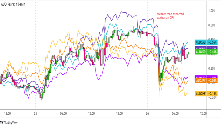 Weaker than expected Australian CPI put Aussie pairs on shaky ground today.