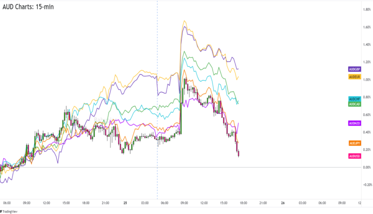 Overlay of AUD vs. Major Currencies Chart by TradingView