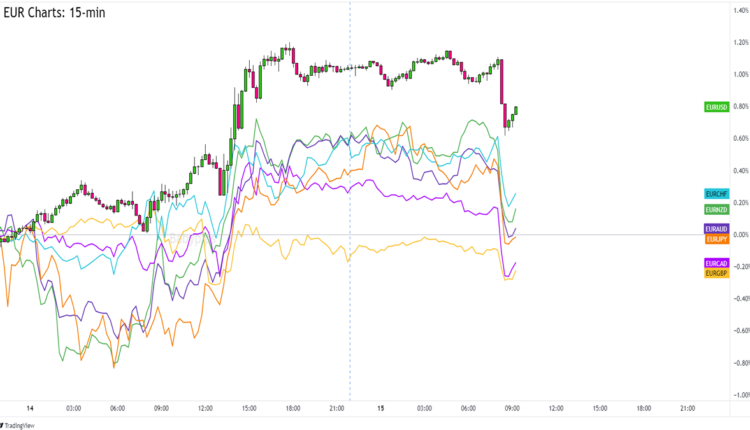 Overlay of EUR vs. Major Currencies Chart by TradingView