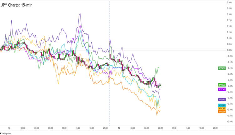 And so they did. JPY is trading the lowest against AUD and GBP and is registering the least losses against CAD and CHF.