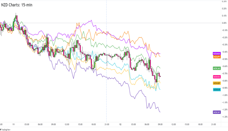 It’s a pretty close fight but, as of writing, NZD is having the worst day against CHF, CAD, and JPY and isn’t too in the negative against fellow “risky” assets like AUD and GBP.