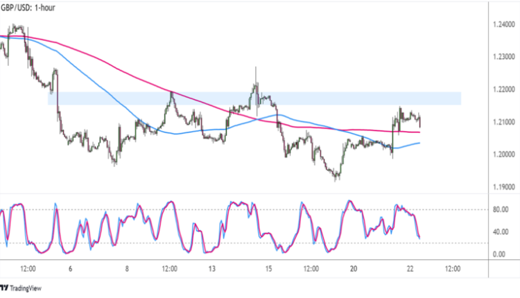 Price is inching closer to testing the neckline resistance at the 1.2200 major psychological mark, and a break higher could set off a rally that’s the same height as the chart pattern.