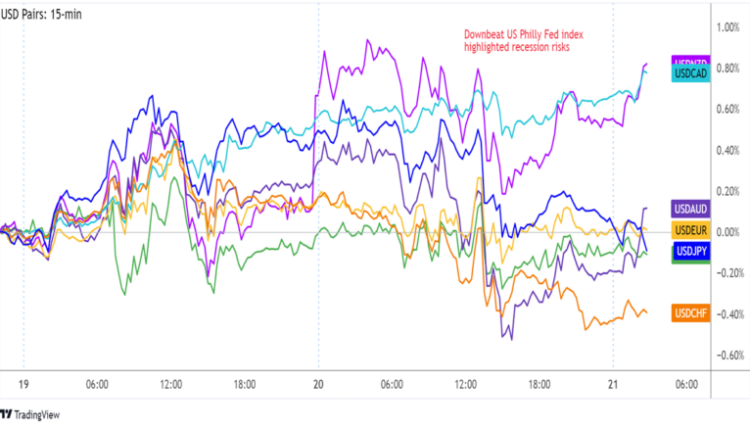 The U.S. dollar struggled to hold on to its gains when the Philly Fed index was printed, causing Cable to retreat from the top of its short-term range.