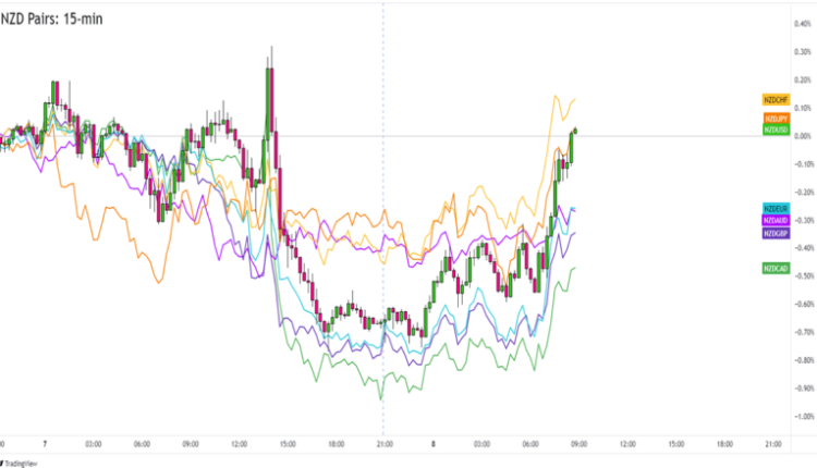NZD rose against ALL of its major counterparts. It gained the most pips against safe havens like USD, JPY, and CHF and gained the least against CAD and GBP.
