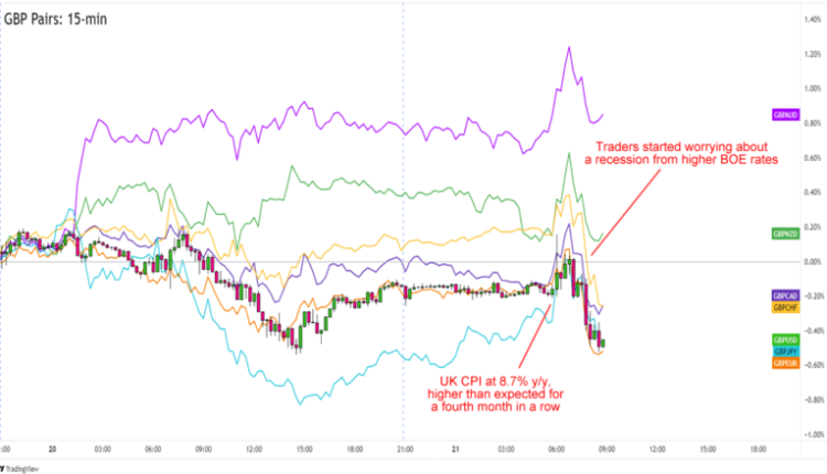 Instead of hawkish bets pushing GBP higher, though, markets are more concerned that higher BOE interest rates would make a recession more likely.