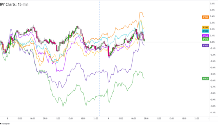 JPY dipped below its U.S. session lows before rising back up to its U.S. session highs at the start of European trading.