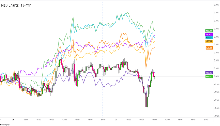For now, NZD is trading higher against AUD, CAD, and GBP but still slightly lower against USD, JPY, EUR, and CHF.