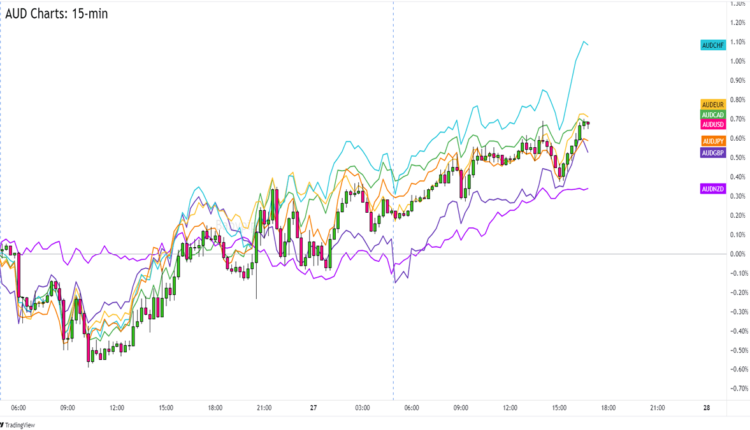 Overlay of AUD vs. Major Currencies Chart by TradingView