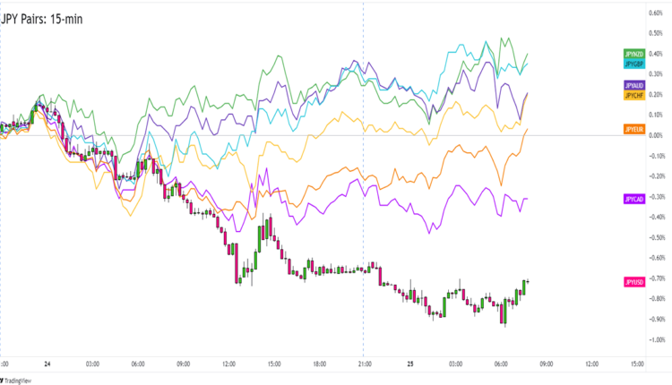 As of writing, JPY is maintaining its intraday gains against most of its major counterparts except for CAD, AUD, and USD.