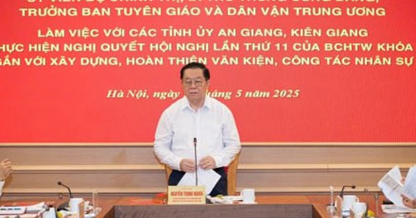 Nội dung trên được Trưởng Ban Tuyên giáo và Dân vận Trung ương Nguyễn Trọng Nghĩa đề cập khi kết luận cuộc làm việc với Tỉnh ủy An Giang và Tỉnh ủy Kiên Giang về việc thực hiện Nghị quyết Hội nghị Trung ương 11 gắn với xây dựng, hoàn thiện văn kiện, công tác nhân sự, sáng 28/5.