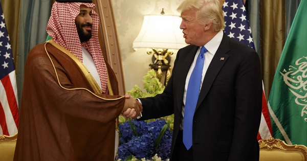 Tổng thống Mỹ Donald Trump (phải) bắt tay Phó Thái tử kiêm Bộ trưởng Bộ Quốc phòng Ả Rập Saudi Mohammed bin Salman trong một cuộc họp song phương tại Riyadh ngày 20-5-2017, trong khuôn khổ chuyến thăm Trung Đông vào nhiệm kỳ đầu tiên của ông – Ảnh: AP