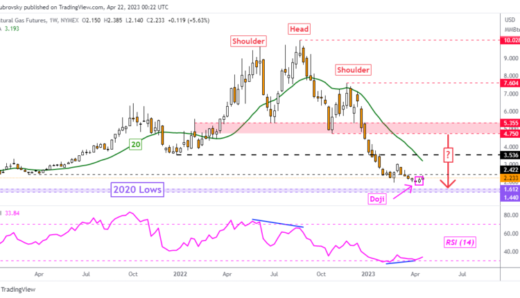 Natural gas prices aimed slightly higher for the second week in a row. This followed the emergence of positive RSI divergence on the weekly chart. The latter is a sign of fading downside momentum, which can at times precede a turn higher. A Doji candlestick pattern also emerged earlier in April, further adding to the argument that the dominant downtrend since last year is running out of steam. Last week’s upside follow-through after the Doji could open the door to extending gains, placing the focus on the 2.422 inflection zone. Beyond that sits the 20-week Simple Moving Average (SMA).