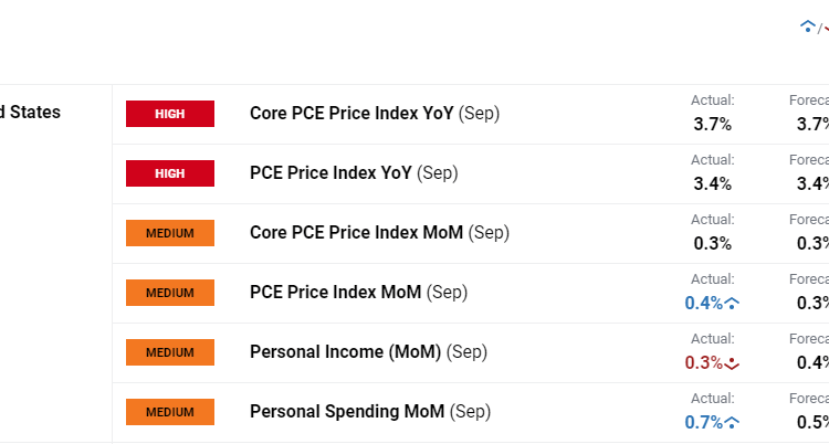 Net Week we have the FOMC meeting and rate decision with another hold largely expected. It will be key to gauge the rhetoric of Fed Chair Powell as there are still some who see a December hike as a possibility. Today's data is unlikely to sway that conversation in any particular direction given the small change in the PCE data unlikely to see the Fed completely rule out a further rate hike with the Central Bank likely to leave the door open should the need arise.