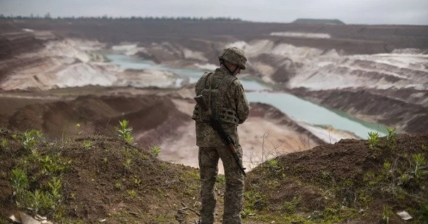 Binh sĩ Ukraine canh giữ tại một khu mỏ.