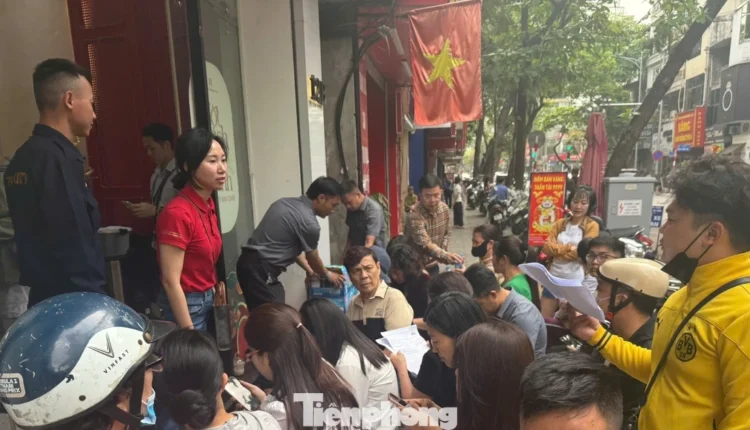 Được thông báo bất ngờ, người dân xếp hàng chờ đợi lấy vàng tại Cửa hàng Bảo Tín Mạnh Hải.