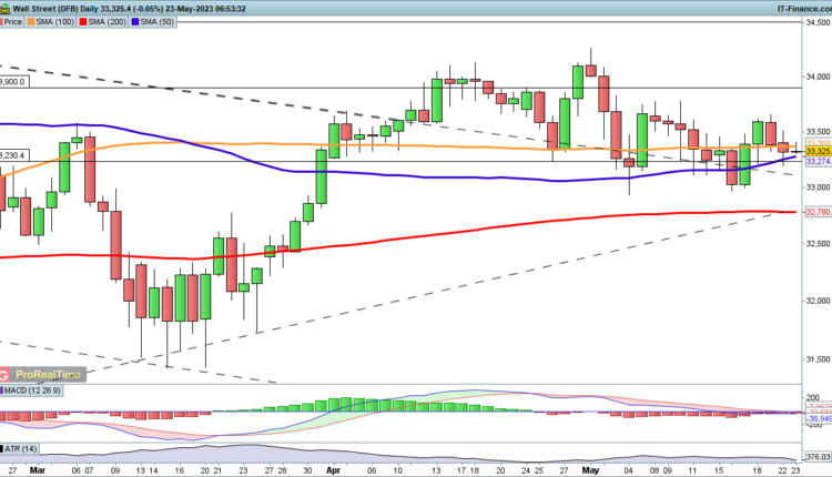 Recent weakness has been capped around 33,000, so sellers will need to pierce this level and then the 200-day SMA, combined with trendline support from the October lows, to open the way to a more bearish view.